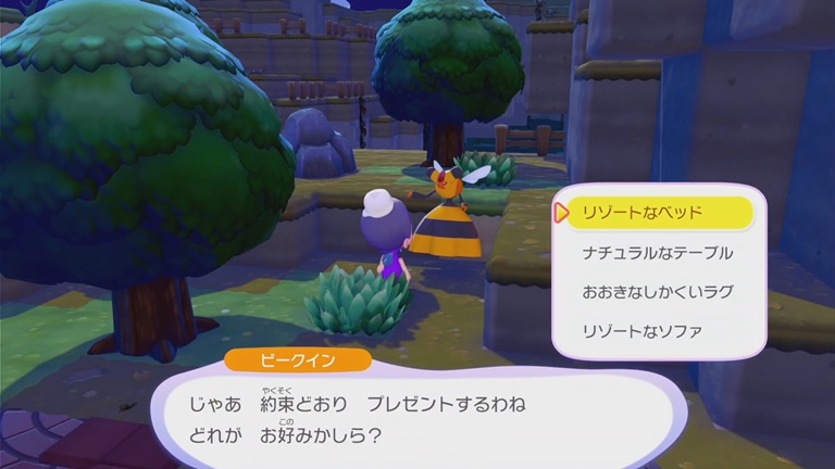 ビークインにあまいミツを3つ渡すと序盤では作成できない家具とこうかんしてくれる。