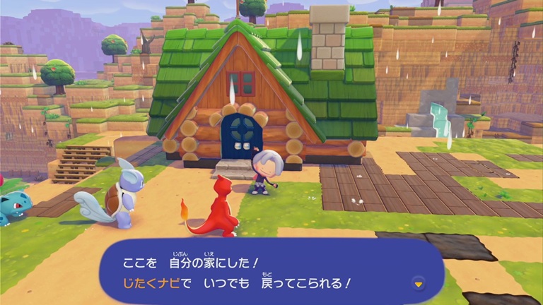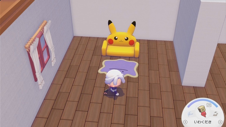 その後、新しい家の前でメタモンの旗を取り出して、Aボタンでセットできる。