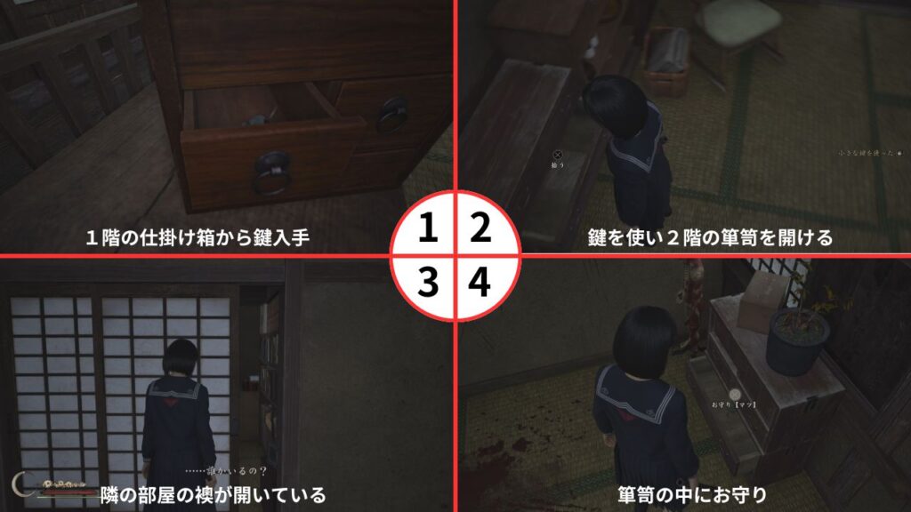 町医者の家の中にお守り「マツ」が隠されている。
