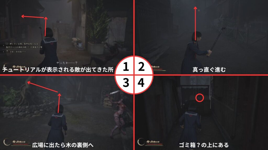 謎解きのカカシを一度も間違えずに抜け出すとトロフィー「鍼治療、始めました」を入手できる。