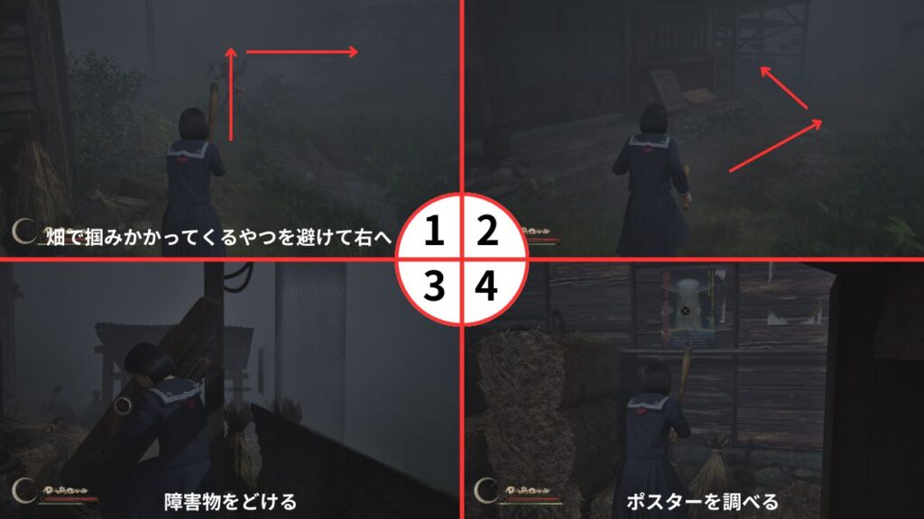 3周目以降の武器構成は鎌or包丁+PP-8001とし、お守り「カワウソ」を装備しておけば、ほぼ武器を気にせずとも攻略できる。