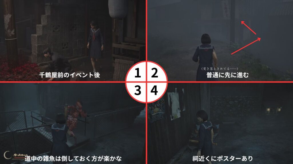 タイミングとしては霧のバケモノから逃れて修と凛子を探すため千鶴屋に戻ろうとしている時。
